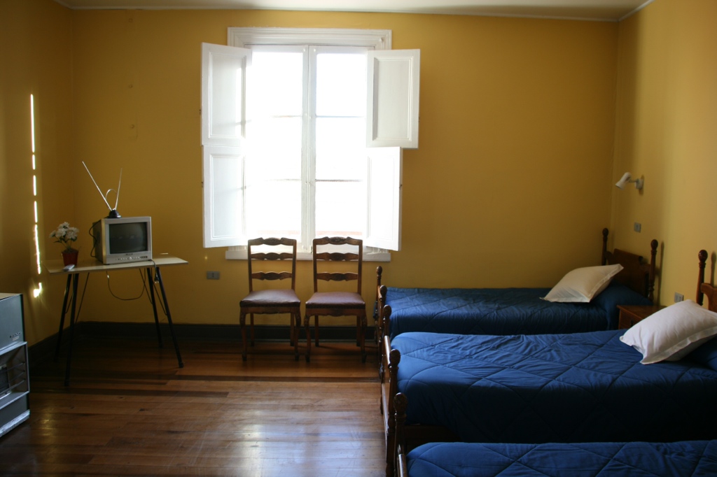 Nachdem wir uns alle penibel mit Unterschrift und Pässen eingetragen haben, führt uns die Dame durch eine – nennen wir sie mal – Halle zu unseren Zimmern. Stark, dass es hier mit Rohren und diesen gelben Treppen aussieht wie in einer Fabrik. Aber egal, die Zimmer sind ok, wenn auch für den Zustand super überteuert. Hauptsache endlich eine Dusche! Denkste. Eiskaltes Wasser. Auuuua, wir möchten das nicht. Sachen wieder an und zur Rezeption. „Ach schon wieder kein Aqua caliente?“ stöhnt es hinter der Scheibe. Na gut, sie nimmt die Taschenlampe, krempelt die Ärmel hoch und verschwindet im Dunkeln, die Wendeltreppe hoch (, die selbstredend hinter einem Holz-Sichtschutz versteckt ist). Um 0.20h ist es tatsächlich vollbracht. Wir stehen unter einen warmen Dusche! Gute Nacht.