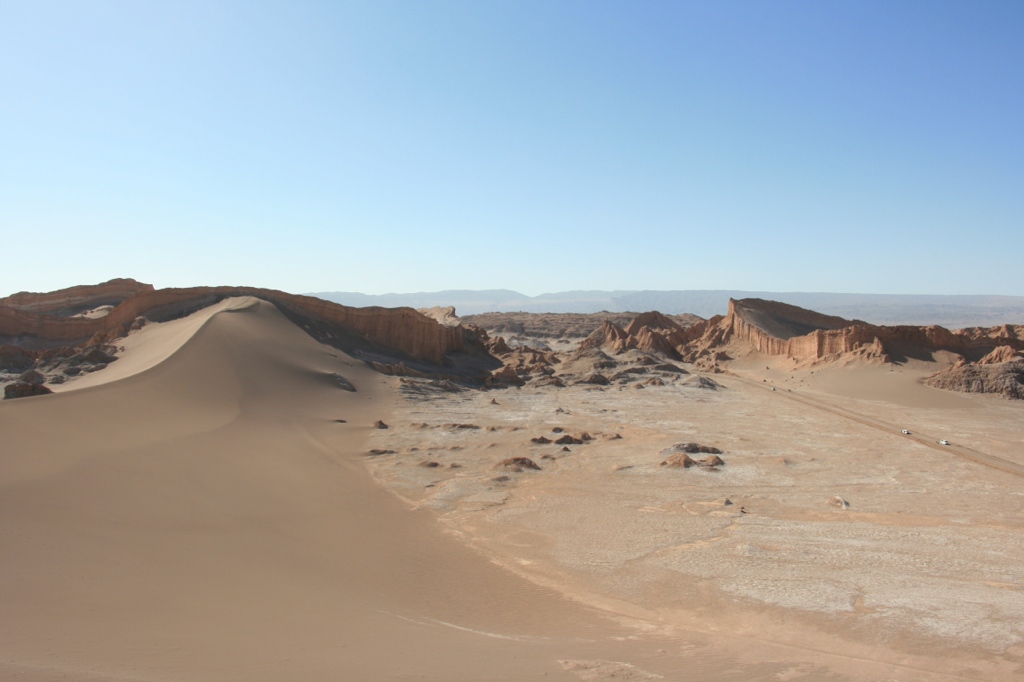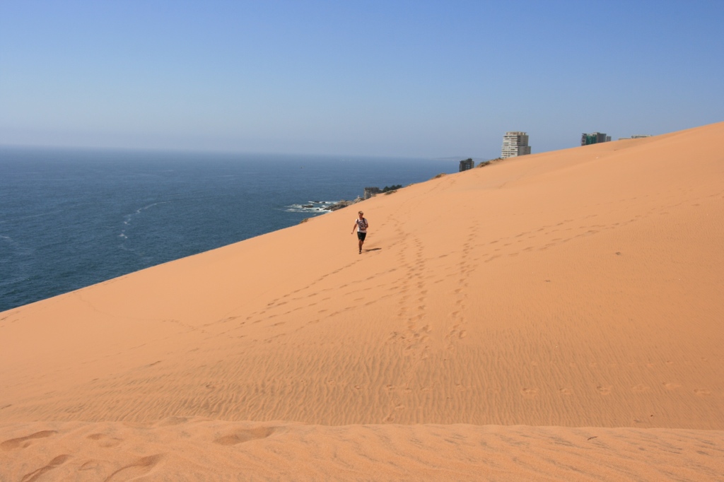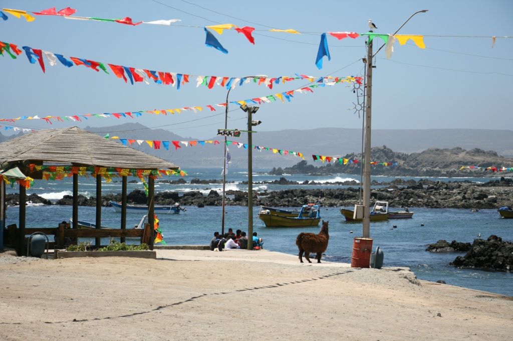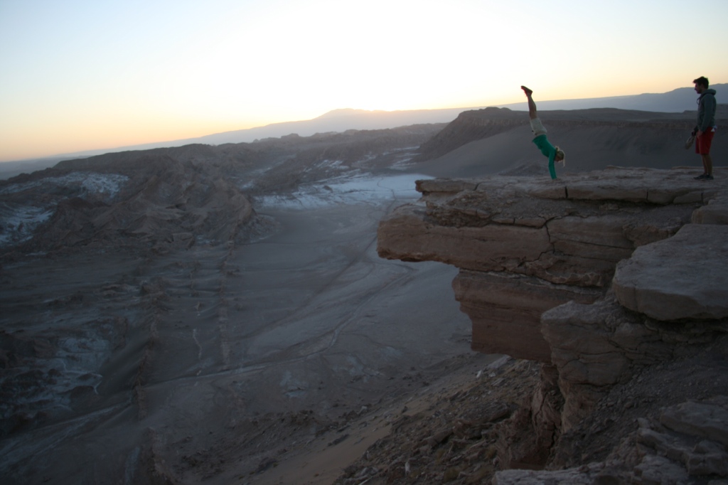 Nach erfolgreicher Heimsuche gönnen Thomas und Sari sich noch ein dekadentes Essen in einem der super schönen Restaurants – da haben sich manche echt was einfallen lassen. In diesem Fall hat man aus einer Wellblech-Hütte in typisher Hangar-Form ein Holz-Bambus-Paradies mit großen Lehm-Öfen und entspannter Clubmusik gezaubert. Einmal Lomo, einmal Lachs, zweimal Caipirinha. Wir sind wieder glücklich! 😀 Auf dem Nachhause-Weg machen wir noch einen Abstecher, um ein bisschen Sterne zu gucken. So viele auf einem Haufen: unfassbar. Noch nie gesehen! Wir suchen was zum Sitzen, hauen uns gemütlich auf eine Mauer… und werden nach nur 10 sek verscheucht. „Man was sind die Chilenen unfreundlich“, denken wir uns. Bis wir checken: whoops, das war eine Kirchenmauer xD