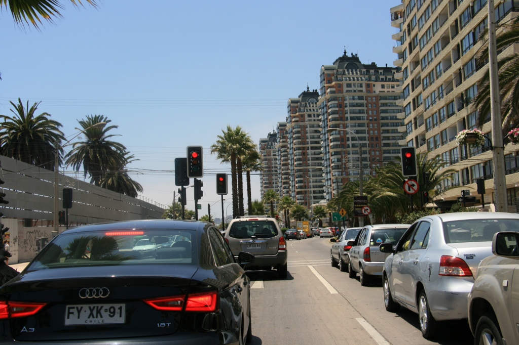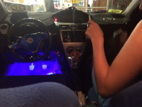 Als unser autorisiertes Taxi kommt, müssen wir allerdings lachen. Ein 60-jähriger Chilene steigt aus einem gepimpten Toyota. Nur plötzlich aufblinkende LEDs hinter der Scheibe suggerieren, dass DAS ein Taxi sein soll. Der Kofferraum geht auf – alles komplett blau beleuchtet. Plus riesen Subwoofer, der gefühlt 1/3 des Platzes einnimmt. Was n Gangster! xD Auch die Fußräume sind farbig komplett am Abfeiern. Mit halb offenem Kofferraum (wegen des Subwoofers hat natürlich nich alles reingepasst) geht’s Richtung Hotel. Aber alles seguro (also sicher) señorita. Jajaja, klar 🙂