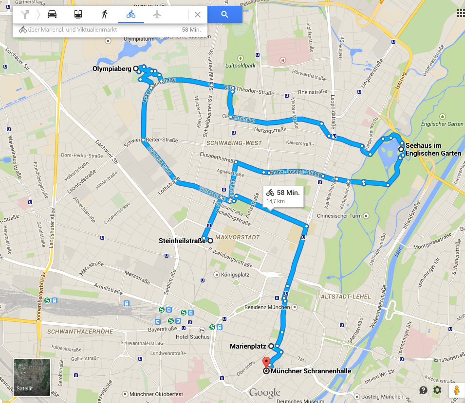 Obwohl ich recht fies aufgewacht bin, gab’s heute Morgen an meinem ersten freien Tag in München gleich eine nette Begrüßung. Dickster Sonnenschein vor meinem Fenster rief: „Holaaaaaaaa!“. Nach einem technischen Malheur, das mich vom Seriengucken abhielt, dacht ich mir deshalb: Och joa, nimmste das Angebot doch glatt mal an und startest eine übertriebene Sari-von-0-auf-100-Fahrrad-Tour mit Alex (mein Zwischen-Vermieter) Fahrrad. Bildschirmfoto 2015-03-07 um 09.11.34