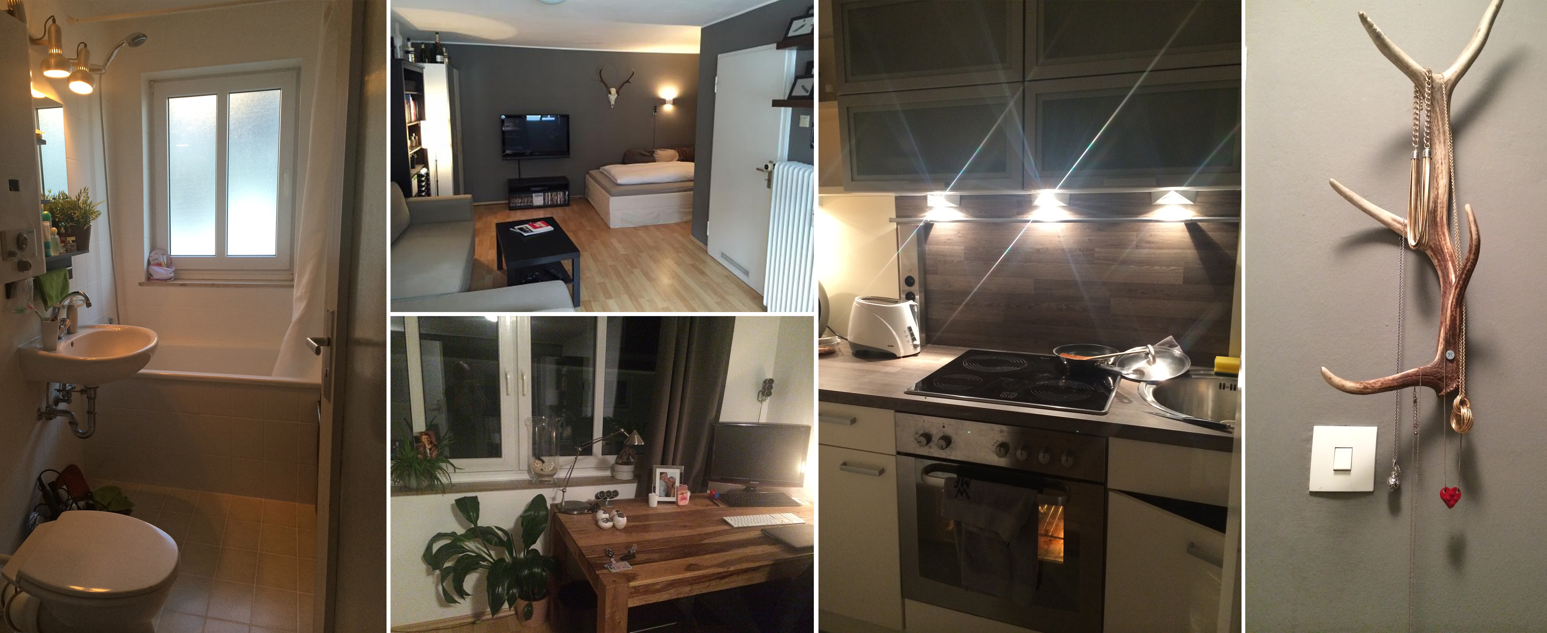 SkyWie dem auch sei, mein neuer Job ist großartig. Ich verzichte an dieser Stelle – auch aus juristischer Ausgefuchsheit – auf Details. Döner-Teller für 3,10 inner Kantine und diese zwei herrlichen Fotos der kreativen Arbeitsumgebung müssen da mal ausreichen.  Für einen Brezel-Mitbring-Service hab ich mir sogar sofort eine Mitfahrgelegenheit beim Arbeitskollegen erbeutet. Mein Auto chillt jetzt auf dem nächstgelegenen kostenlosen Parkplatz – drei U-Bahn-Haltestellen von meiner Wohnung entfernt. 😀 Die ist allerdings auch n Knaller. Hab mich hier super ausgebreitet und Donnerstag erstmal das Revier markiert – mit 1a Steakgeruch, der selbst heut am Samstag noch nicht so richtig verfliegen will. Was will man mehr? Ich geb euch mal einen kleinen Einblick. Ein Highlight, auf das ich dabei explizit hinweisen möchte, ist mein exklusiver und sowas von nicht veganer Schmuckhalter. xD steinheilstr_kleinHier ist es zwar schön und gemütlich, draußen lässt es sich allerdings auch bestens leben. Meine bayerisch-christliche Taufe inklusive 2,5 Mass Bier hab ich schon hinter mir. Gestern Abend ging’s mit Steffi, die Thomas und ich vom Sonne-Mond-Sterne-Festival kennen, und ihrer Hood zum Starkbierfest. Vollständig akzeptiert werd ich von der Gemeinde aber erst, wenn ich zur nächsten Feierlichkeit in Dirndl erscheine. starkbierfest_collage_kleinAber das steht ja eh schon auf dem Zettel. Die Top-Erkenntnis des Abends sieht anders aus: Menschen, die um 14h anfangen, Starkbier zu trinken, schauen ziemlich lustig drein und reden quatsch. Wer hätte das gedacht?! :))) Mein Highlight: Die Diskussion, ob es sich bei dem Objekt der Begierde denn jetzt um ein Einhorn, um Pegasus oder doch um die auf der Hand liegenden Kombination – ein Pilgerhorn – handele. 😀