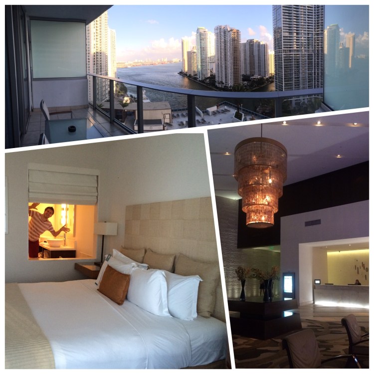 Auch in Miami muss von einem Hotel-Knaller berichtet werden. Hach, ich kann mich jetzt noch bepinkeln vor Lachen. 😀 Ausgangslage war die: Ich hab Thomas zum Master eine Nacht im fetten Hotel organisiert. Er wusste nix Genaues und ich hab die Lage herrlich naiv unterschätzt. Wir fahren vor (mit unserer kleinen Hyundai Schüssel). Erste Reaktion: ääääääh. 😀 Wir stehen zwischen Ferrari und Porsche, vor Kopf die Yachtparkplätze mit so heftigen Geräten. Hahahaaha. 6 Concierges wirbeln herum – einer rennt auf uns zu. Scheibe runter (von unserem völlig zugemüllten, sandigen Hyundai): „Hello, we want to check in!“ 😀 Mit einem Oh-mein-Gott-haben-die-sich-verlaufen-Stempel auf der Stirn weist er uns an, wo wir parken können. Schön. „Do you need help with the luggage?“ Na claro que si! Raus aus dem Auto, Danny will take care of everything Ms. Sotsche – und zack, schneller als wir gucken können ist unser Auto-Schlüssel weg. Ok, das Parkproblem bzw. Parkhausabfahren hat sich damit erledigt. Kashing! xD Ganz „souverän“ folge ich Lobbyboy Danny in Flipflops und ausgewaschenem Tanktop aufs Zimmer und drück ihm „ganz lässig“ beim Gehen einen Schein in die Hand. „So macht man das doch, oder?“ 😀 Lachen wir uns danach kaputt, daran denkend, dass sich irgendson Hans grad in unsere super Müllschleuder setzt. XD Aber egal, all der Scham war es Wert. Das Zimmer und vor allem der Ausblick war dann so wie erwartet: schick, aber noch von dieser Welt.